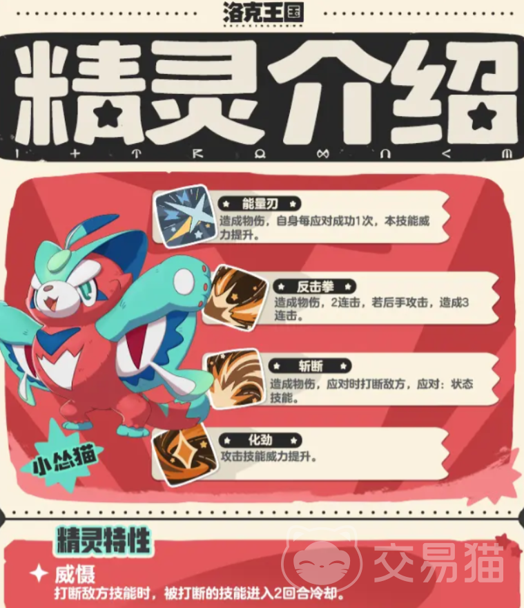 洛克王国手游即将上线的小怂猫是一只原创精灵,以其可爱的外表和设定俘获了不少玩家的心。那么,洛克王国手游小怂猫怎么获得?下面小编就为大家带来这只萌萌哒小精灵的获取攻略及属性介绍,小怂猫不仅外形可爱,实用性也非常高,特别是其“威慑”特性为队伍带来更多操作空间,感兴趣的玩家快来看看吧!