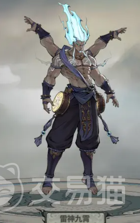 雷神其实是一个非常魁梧的多手男子,他有着4只手臂。而且有着一头犹如雷电一般的蓝色秀发,再加上十分凶猛的形象,更是让人无法靠近。作为相应的装饰,在他的腰部佩戴着两个小鼓,随着拍打之后就可以释放出响声动天的惊天之雷,让人震耳欲聋。
