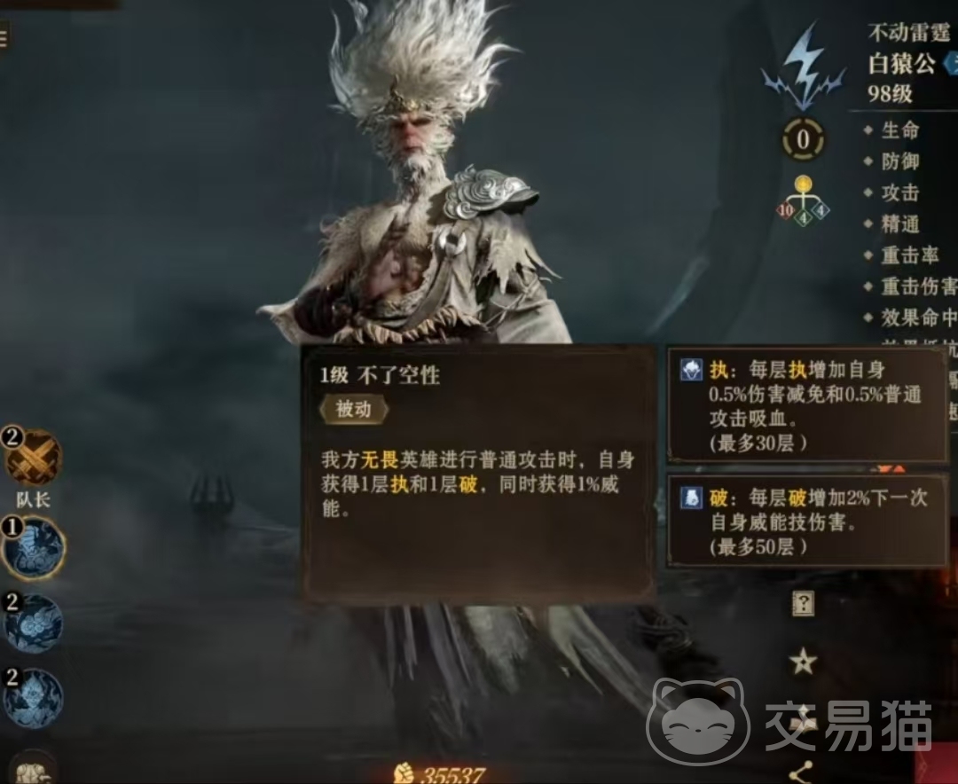 首先他的技能方面拥有了三个技能,第一个技能是被动技能,能够提供伤害减免和音通效果。第二个技能是级血,攻击的时候能够叠加级和破,同时获得威能。而且他的技能能够造成大量的伤害,并且随着破层数的增加而提升。悟空作为一个无畏英雄,特别擅长普通攻击产生连携效果。而且他在战斗当中能够召唤白猿公,同时增加自身威能剂的伤害。而且还附带吸血效果,使他在战斗当中更加持久。