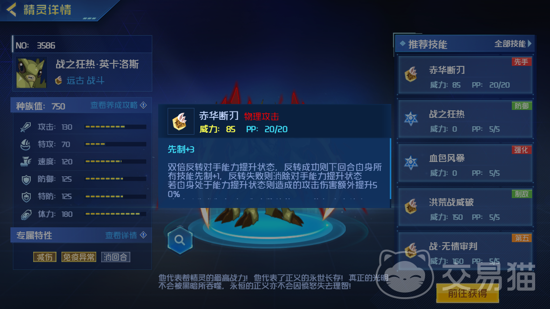 首先他的一技能叫做赤华断刀,能够双倍反转对手的能力,并提升自身状态。如果成功的话,技能先制+1,失败的话就会消除能力状态。如果处于能力提升阶段的话,伤害也会进一步提升。给予对手高额伤害时,智商也会恢复相应数值的体力。