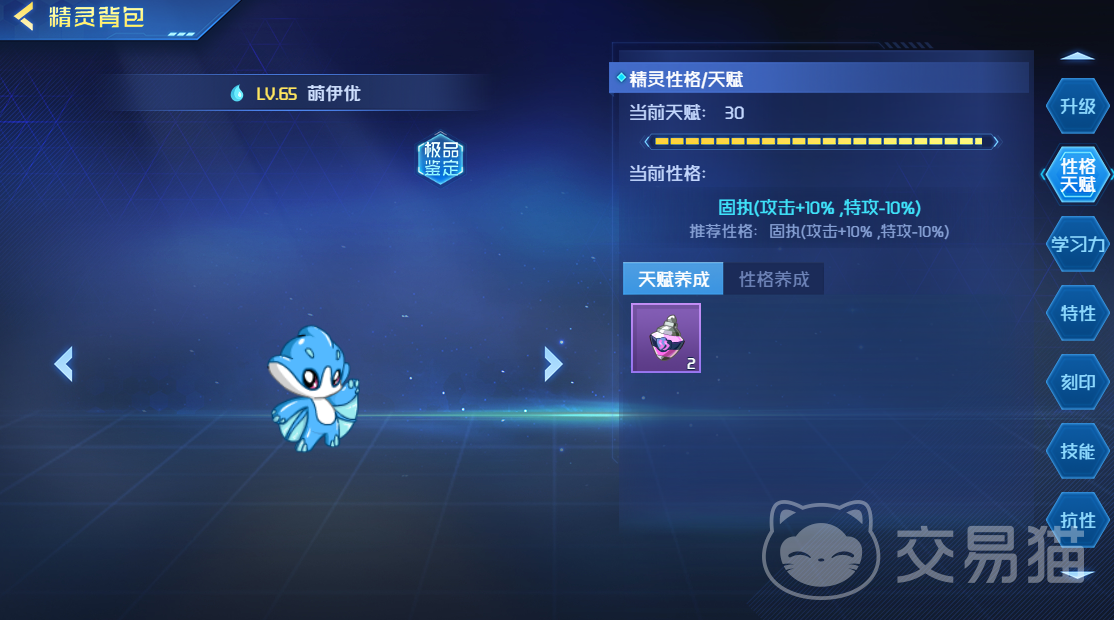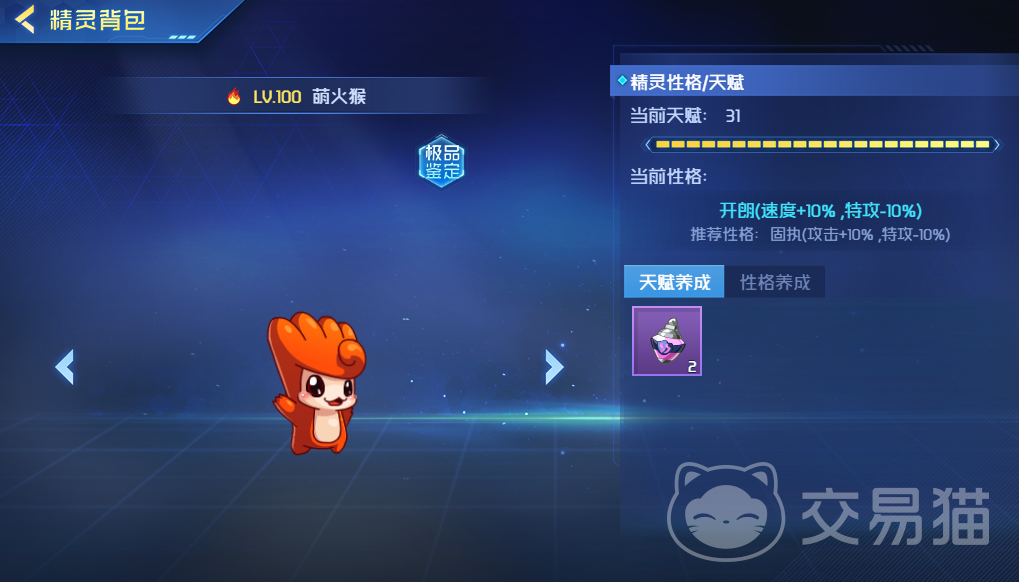 萌伊优的性格属于固执,加10%的攻击力,不过特攻会减少10%,你可以将自己积累的学习力分配到不同属性上面。一般更建议加到攻击以及速度上,因为这样能够在发起进攻并快速进行移动。如果天赋点变高的话,相应的属性也会增加。
