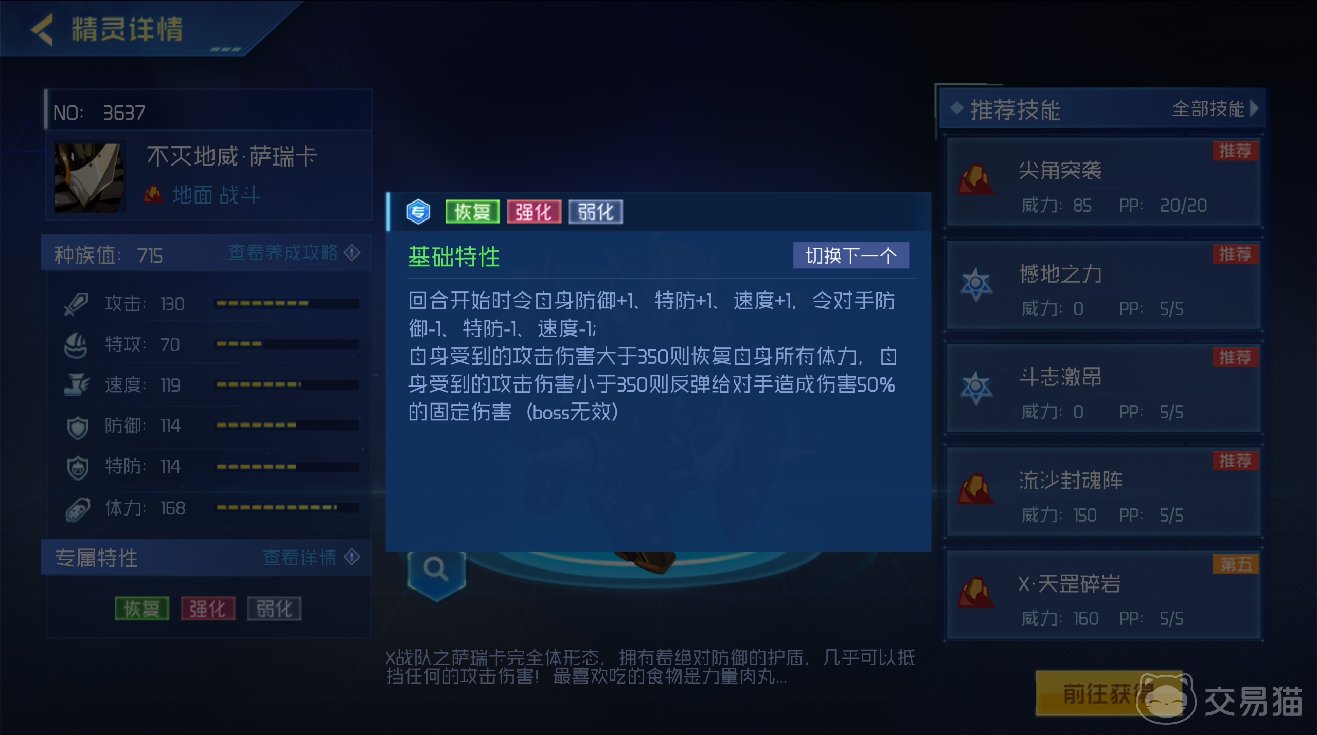 此外,大家还要注意抗性的选择,可以优先选择害怕、疲惫等常见的异常状态抗性,因为萨瑞卡的一些关键技能如尖角突袭和憾地之力,在未触发控场效果时会使敌人陷入疲惫,阻碍敌人使用它的控制技能,为己方赢得更多进攻时间 。同时,也可以根据对手的特点,针对性地提升某些属性的抗性,如飞行系特技的抗性等。