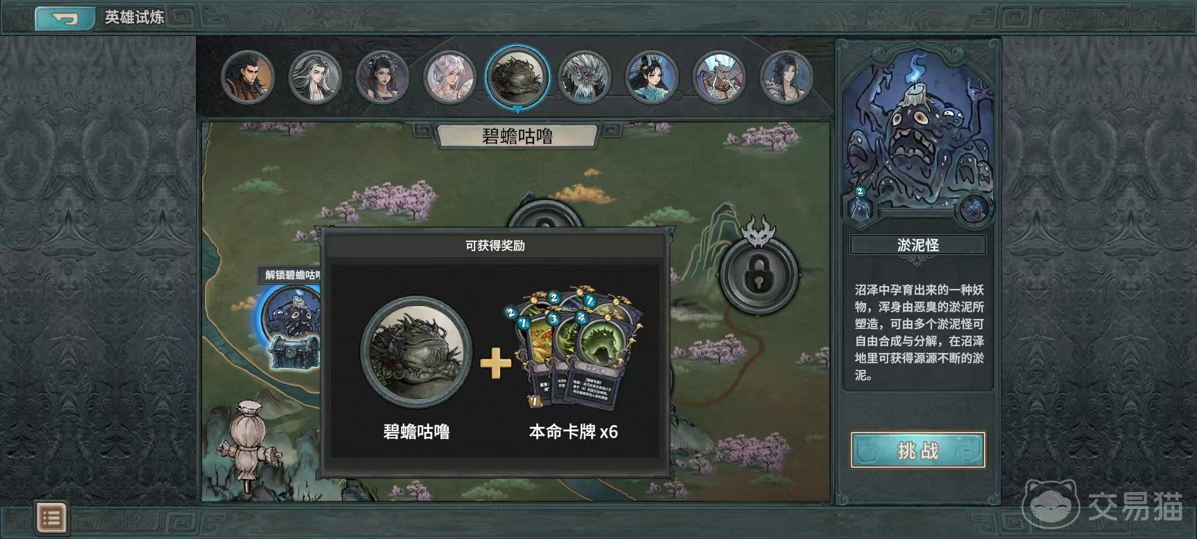 首先,玩家如果想解锁特定的英雄,需要在英雄试炼模式中,完成该英雄的试炼挑战。每个英雄的试炼关卡一共有5关,挑战难度逐步提升。玩家只需要完成第一关的挑战,即可解锁该英雄以及其专属的6张本命卡牌。