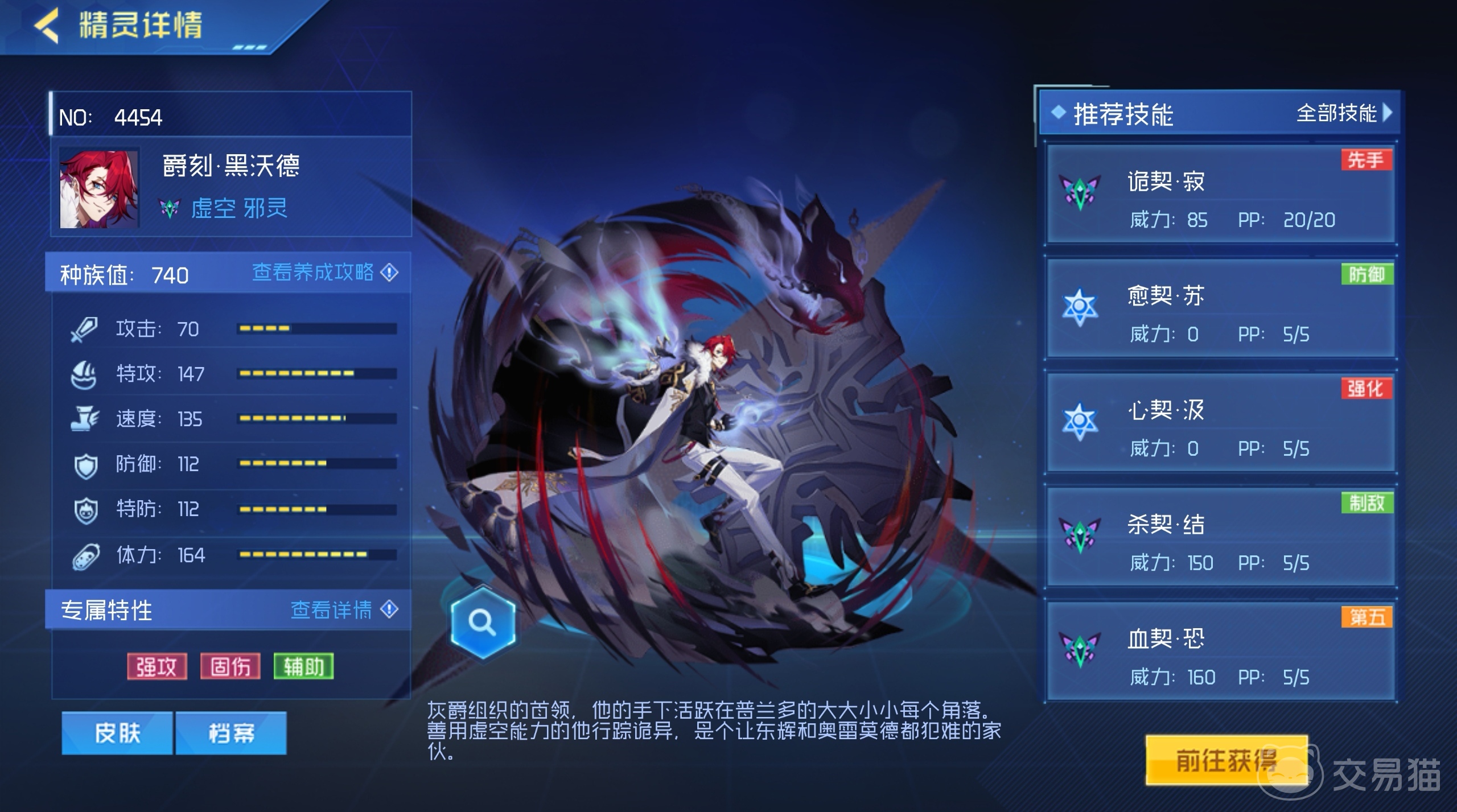 爵刻黑沃德这个精灵,在赛尔号巅峰之战中属于邪灵类的,体力、速度和特攻属性都很高,适合当做输出类角色去用,那么赛尔号巅峰之战爵刻黑沃德怎么玩呢?想要让这个精灵在比拼中有出色的发挥,选对技能很关键,在给定的技能范围内,心契汲、愈契苏、诡契寂、杀契结、血契恐这几个都很值得去选。