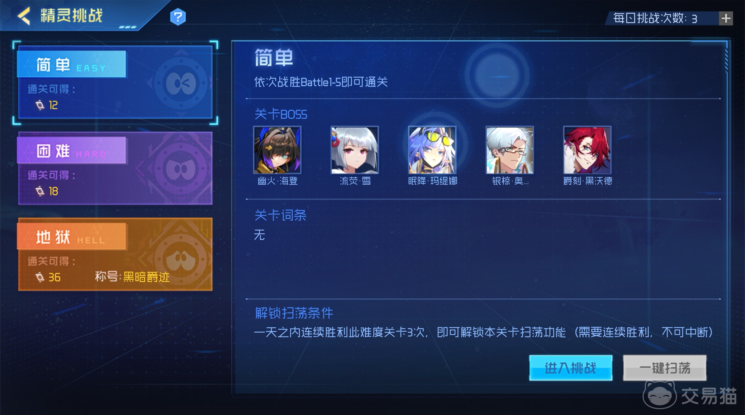 在实际的对抗中,灵活地运用各项技能,才能将对手消灭,聊完它的技能后,再说一说这个精灵是如何获取的。想要得到爵刻黑沃德,你要参加因子关卡下的精灵挑战,该模式一共有三个难度,你可以根据自己的阵容,选择实力相当的去挑战,当你成功通关后,就能得到一定数量的精灵因子,之后就能用它们去兑换精灵和各种刻印了。