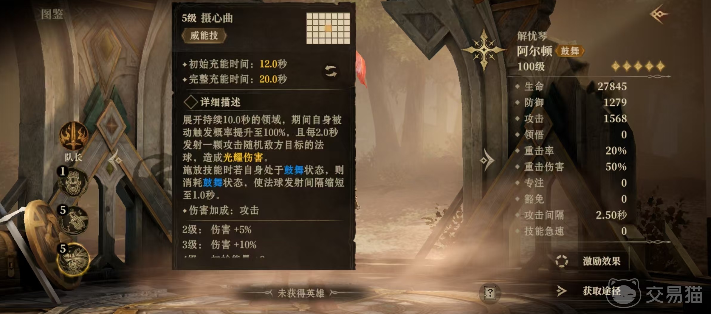 现在就可以看出,阿尔顿最擅长的就是为队友施加鼓舞状态,并且在进行鼓舞施法时施加攻击增益,只要选择合适的队友,几乎可以覆盖全队,带来很好的增益。在配队伍方面其实非常明显,走的就是光系鼓舞队。这些英雄都擅长鼓舞,消耗鼓舞状态强化技能,相互配合下保证了鼓舞的覆盖率,并大幅度提高伤害。