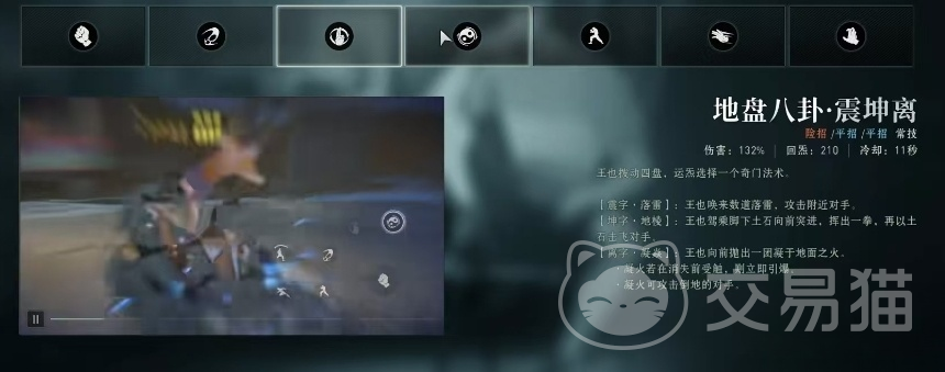 地盘八卦震坤离是王也的核心技能之一,包含了三个奇门法术:“震字落雷”、“坤字地棱”和“离字凝焱”。其中,“震字落雷”可以召唤多道落雷攻击敌人,造成范围伤害;“坤字地棱”能驾乘土石突进并击飞对手,具有强大的位移和控制能力;“离字凝焱”则能抛出火焰,在触碰敌人时发生爆炸,造成高额伤害。