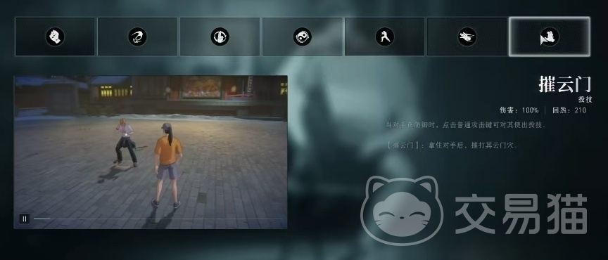 摧云门是王也的投技,当对手处于防御状态时,王也可以直接拿住对手后对其进行打云门穴,造成大量伤害并打断对手的防御,在面对高防御敌人时尤为有效,可以打破对手的防御姿态,为后续技能创造机会。