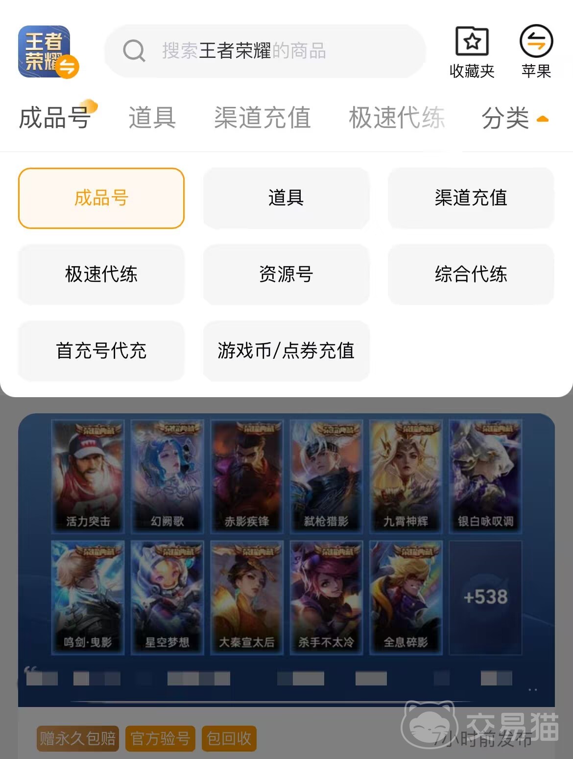 在交易猫的这个平台上,所拥有王者这款游戏的资源十分的丰富,不管是热衷于手机皮肤还是英雄的玩家们,都能找到你对口的需求,此外对于顶级战力高段位的成品号也比比皆是,让大家可以在交易猫这个平台快速的找到适合自己的卖号方式,将你账号价值在这里最大化的展现给买家们。