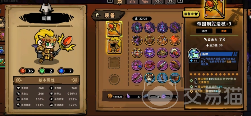 此外该技能还享受攻击的加成效果,意味着随着玩家攻击力的提升,弹幕攻击的伤害也会相应增加。值得一提的是,帝国制式法杖的技能冷却时间非常短,从最初的1秒降低至0.1秒,这使得玩家在战斗中能够频繁释放技能,保持高频率的输出。优先选择增加法术伤害,暴击率和攻击速度的符文,这些都能有效提升帝国制式法杖的输出能力。