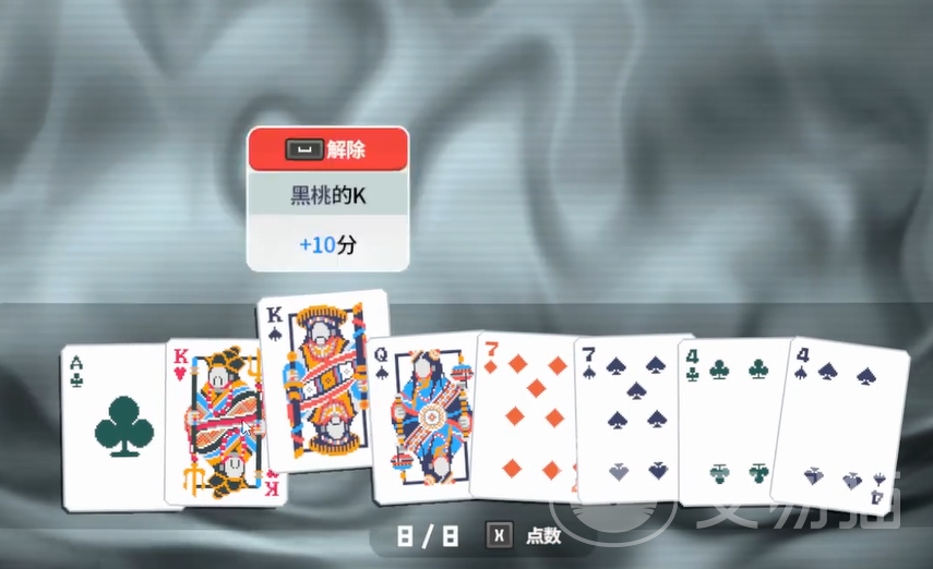 在每局游戏中,玩家每回合会拿到8张牌,并且拥有4次出牌机会和4次弃牌机会。弃牌后可以从剩余牌堆中补充,每次最多可以弃掉5张牌。通过组合不同的牌型,你就可以获得相应的分数。游戏中的主要牌型包括:高牌、对子、两对、三条、顺子、同花、葫芦、四条和同花顺。其中,高牌的规则是:如果出的牌没有形成任何组合,就只会选取其中分数最高的一张计分。而对子、两对和三条则分别是由两张相同点数的牌、两组对子和三张相同点数的牌组成,且所有这些组成部分都会计分。更高阶的牌型包括顺子、同花、葫芦和四条,而顶级的同花顺则是由五张花色相同且点数连续的牌组成,分数爆炸式增长。总体来说,两对、三条和葫芦是相对容易打出的牌型,适合玩家优先选择。