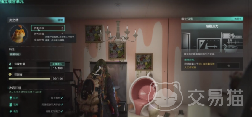 抓起来的时候可能不是那么苦难,但是想要玩家们给他提供一个比较舒适的环境,比如福红光照射,周围要摆放一些玩具或者是可以消耗十万电力的相关设备,只有这样才能确保它在游戏当中发挥最大的效果。