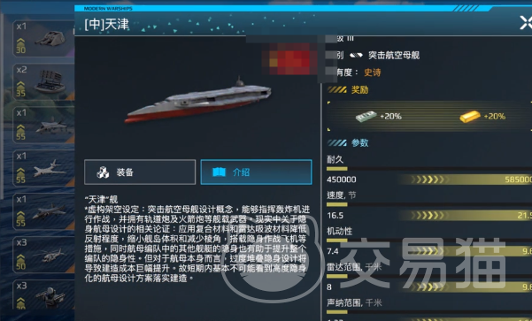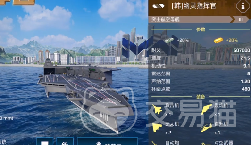 幽灵指挥官:这也是平民比较适合的航母,通过转盘就可以保底获得速度比较高,但是耐久度相对比较低。在空中会拥有强大的输出火力,还有4架输出战斗机,不过在长时间对局时能力比较弱。