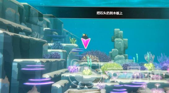 第一,位置高度至关重要。 玩家需要拾起石头后,游到木板的正上方,并且抬高到一定的高度。这不仅是任务要求,也是物理原理的体现:让石头有足够的自由下落空间,利用重力产生的势能转化为动能,才能让它具有破坏力。如果高度不够,石头砸在木板上只会像掉进一块软垫上,完全没效果。