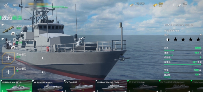 飓风号(旋风级)是一款速度极快、机动性极佳的巡逻艇,装备了两座自卫炮和六枚AGM-176格里芬导弹。虽然导弹的单发伤害较低,但数量优势明显,可以连续发射六枚导弹,对敌方目标造成持续的压制。此外,其高机动性和速度使其在躲避敌方攻击和快速补给物资方面表现优异,然而,飓风号的缺点也不容忽视,缺乏有效的防空设备,且耐久值较低,容易被敌方击毁。