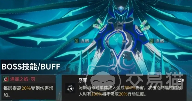 最后阿斯塔蒂副本当中,高难度模式下她的伤害非常高,一旦被她拖入长时间的战斗,那么基本上就无法获胜了,阿斯塔蒂的伤害可以无视防御进行攻击,她对玩家所造成的伤害十分惊人,同时每当同属性的角色行动4次后,角色所受到的伤害将会增加20%,因此回合数越多玩家优势就越小,而且如果她的技能攻击到了克制的属性,她自身还会增加20%的行动速度,所以队伍中不能出现被克制的属性参战。