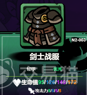 剑士战服:提供生命值和防御力加成,同时增加攻击力和暴击率,适合需要高爆发输出的刺客角色。