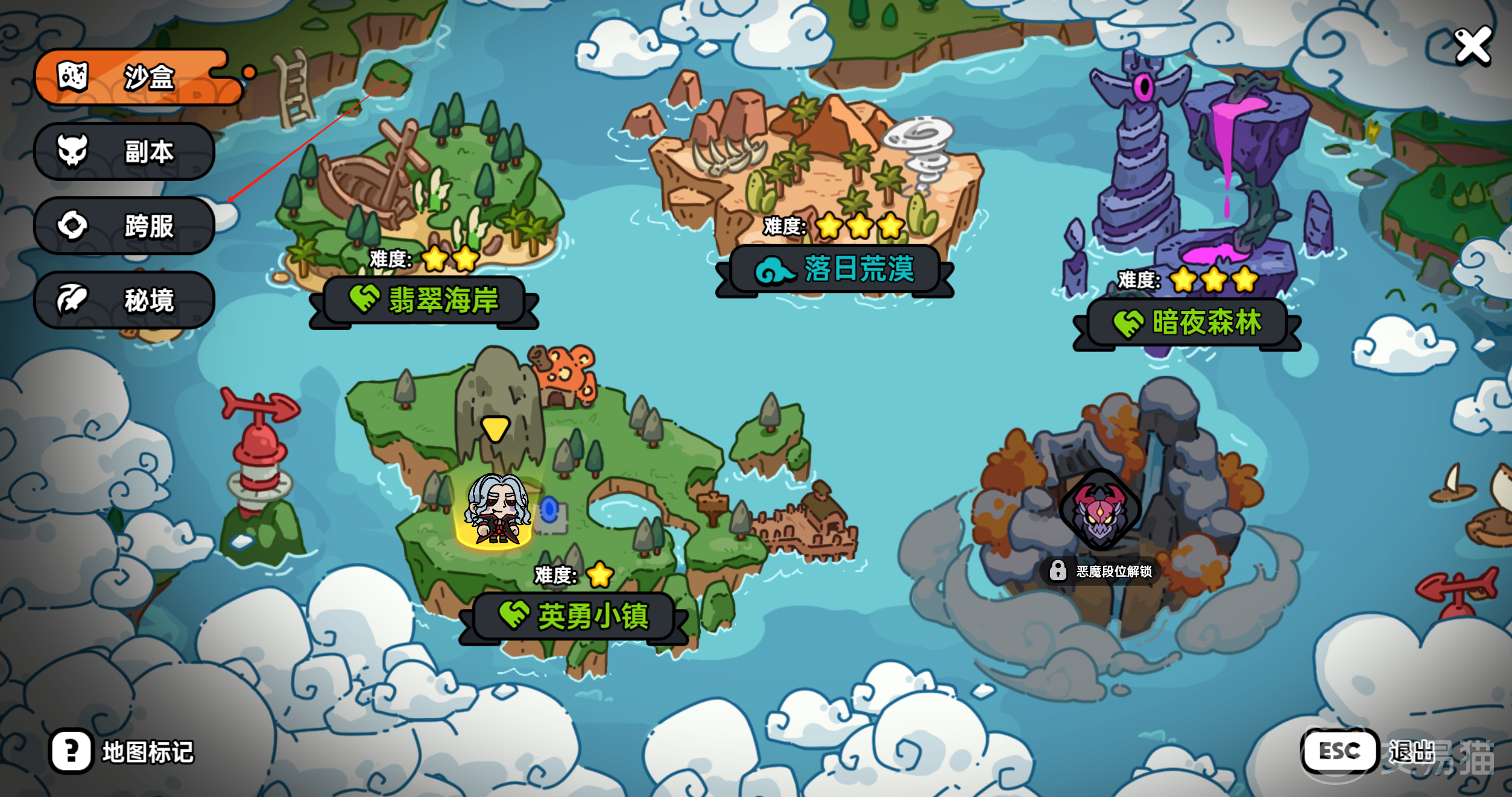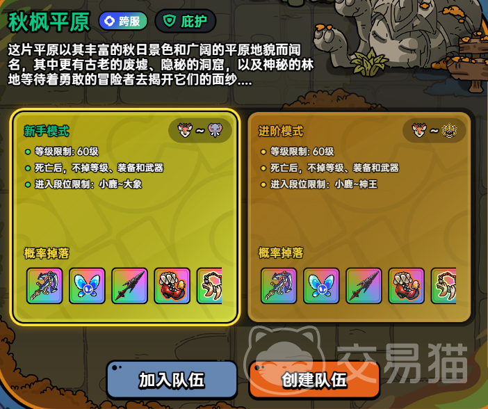 想要去秋枫平原首先要来到英勇小镇的中心安全区内,然后主板块儿的左下角找到驿站使者按一下空格与其交流,在左侧四栏内找到跨服,一般达到小鹿段位就给大家开通了,但是只允许小鹿到大象段位的玩家才可以进入,而且角色等级限制在60级,这就是为了避免太多高玩欺负萌新。