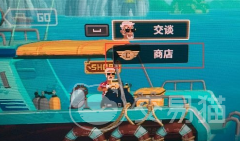 想要寻找柯布拉,玩家可以来到船上,在这里将发现一位戴着黑色墨镜,穿着红色衣服的白发角色,这就是我们要寻找的柯布拉。遇到对方之后点击空格按键,会发现共拥有两种不同的选项,可以与其交谈,还能点击商店选项进入商店内部。