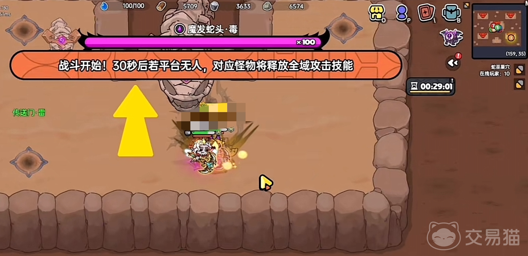 当提示美杜莎尝试强制召回魔法蛇头的时候,玩家们直接可以等死,否则所有玩家都会吃到高额的属性伤害,打完舌头之后可以将装备替换为蝙蝠衣服到早些深海项链和虫戒指,主武器最好推荐仙人掌球,这样万一有小蛇的话可以通过这个武器的弹跳直接打到boss,从自己对应格子出去的时候一定要切换为稿子,防止进入主世界被地刺秒掉。