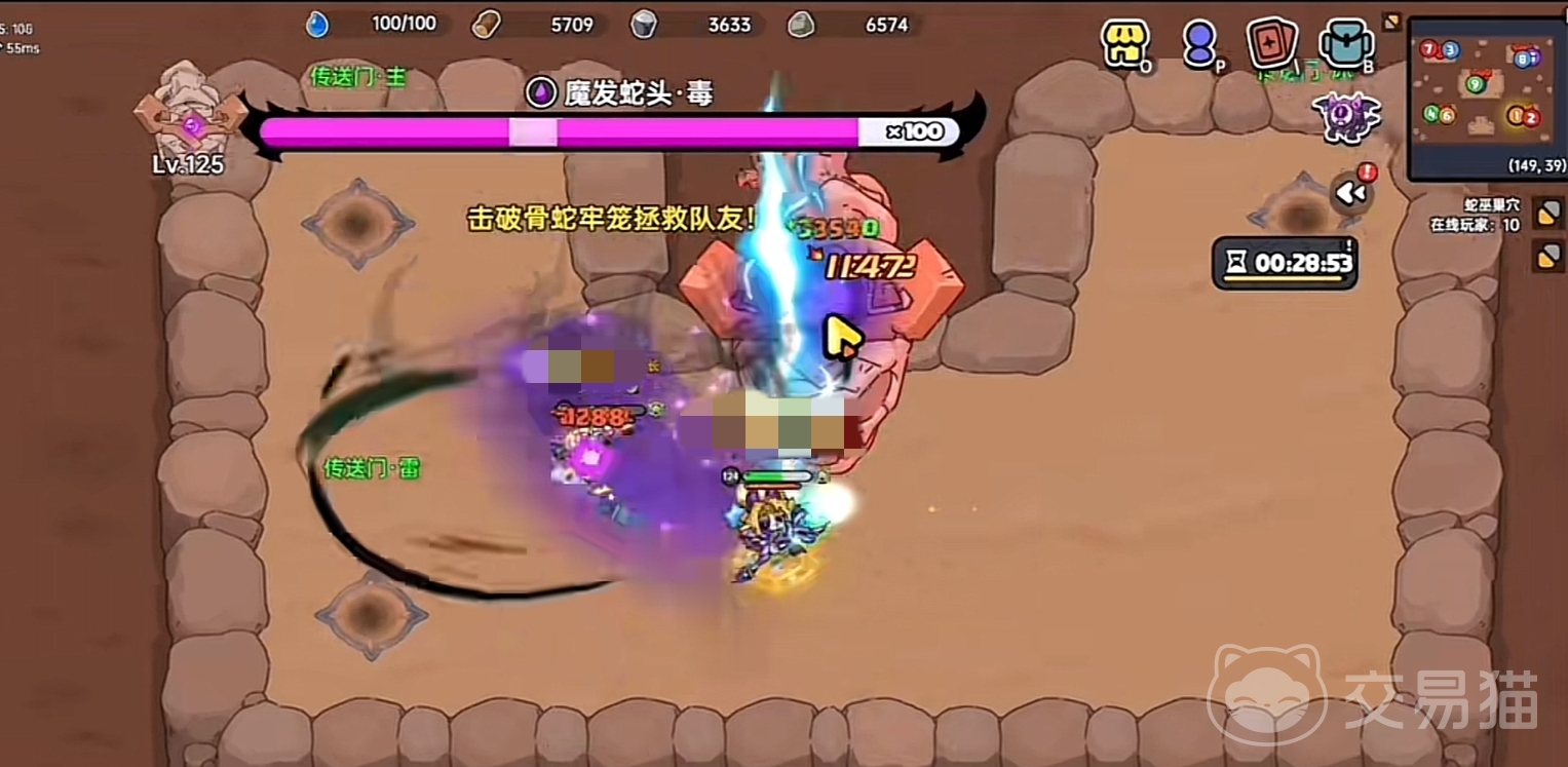 进去之后两两一组分配在主世界中,不用吃到美杜莎的debuff,进入之前优先还是起一个暴击镰刀,然后替换为稿子进入之后可以防止暴毙,对应格子两个人就迅速进到格子里切换为前面讲过的主武器,一定要注意,死了之后必须第一时间保证复活,Boss的每个格子都是所有人分摊伤害,如果有一个人倒地那么剩下的九个人则要多去分摊那个倒地的人的伤害,这样boss即使释放全屏技能的时候,只要没有人掉点,我们依靠吸血鬼的被动就可以扛得住。