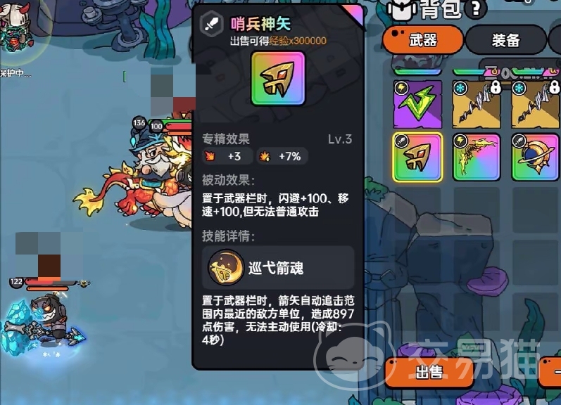 哨兵神矢的技能叫做巡戈箭魂,是目前为止最强的副武器,放在武器栏里面就会释放出来箭矢,自动追击附近的敌方单位,而且并不仅仅只是一发,造成的伤害还很高,还会给玩家们提供100点的移速和闪避效果,在跑图的时候可以配合火弓以及鸡哥不停的风筝拉扯敌人,本身火弓鸡伤害高而且射程远,敌人想靠近一个火弓主动技能就翻滚走,哨兵还会一直释放箭矢来追击敌人造成伤害,非常好用的神器。