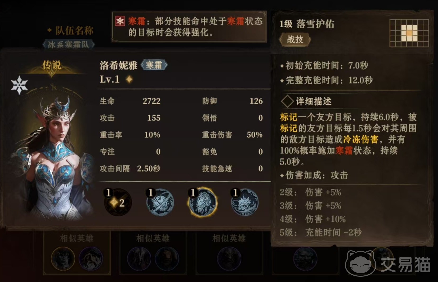 阵容其他人选分别是洛希妮雅,霍查迪尔,尤里恩和多尔切蒂斯。洛希妮雅能发射出在敌方目标之间弹射的冰球,冰球命中造成冷冻伤害,并有几率施加寒霜状态,冰球在敌方目标之间弹射多次,造成的伤害非常可观。还能在指定地点召唤持续6秒的冰龙卷,每秒对范围内的目标造成冷冻伤害,群体伤害能力也非常出色。霍查迪尔被动能延长目标施加的寒霜状态,它能对范围内敌方目标造成冷冻伤害并施加寒霜,还有对所有寒霜定位的队友目标施加攻击增加的状态。