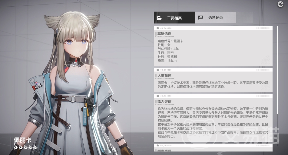 她的一部分器官和脊髓被替换成了源石结构,这样才能维持生活和战斗需要。在大家的冒险过程中,佩丽卡经常能够果断且冷静地应对各种危机,她需要来回奔波于各个据点,为终末地的平稳发展做出自己的努力和贡献。所以是游戏里很重要的一个人物,自身在外形方面也非常可爱,这些元素都使得她成为游戏里玩家最喜欢的人物之一。