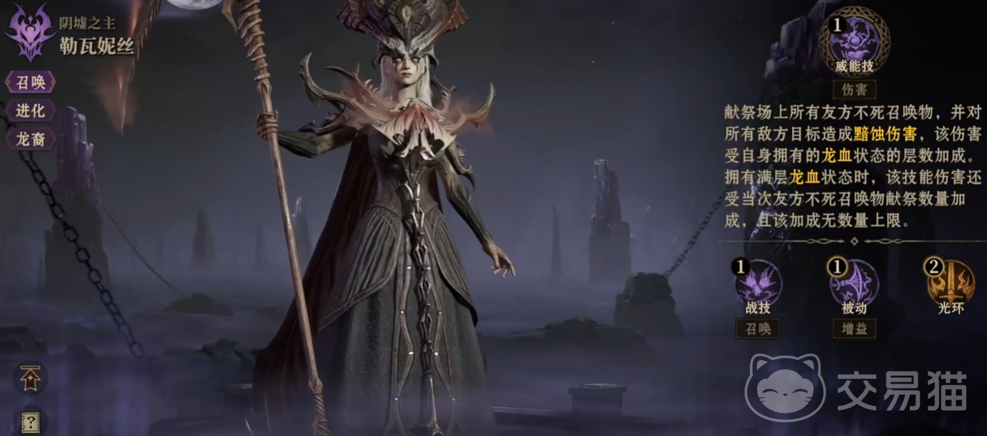 同样作为s1的金骰子角色,如果你主玩的是召唤流的话。它的话就可以召唤大量的不死生物,并可以限制所有的召唤物,并对周围的敌人造成高额伤害。所以这是个玩法多元化的高级召唤流龙翼角色。而且还可以继续进化,很适合无脑地召唤玩法。