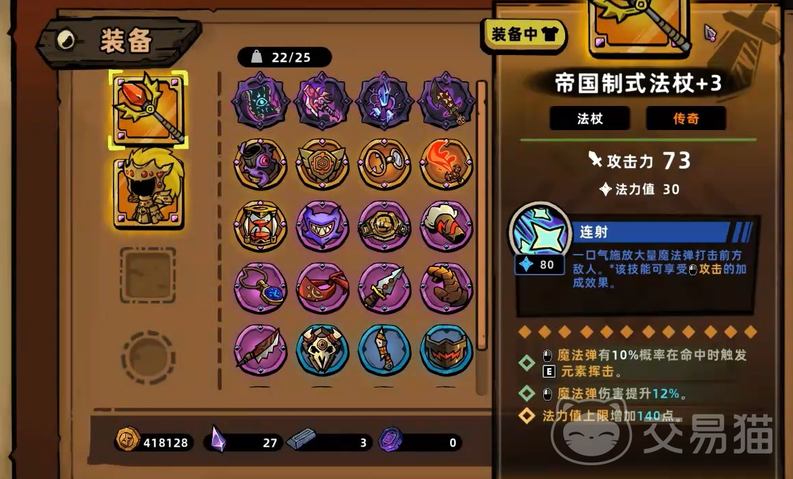 这件装备能够法师流的玩家提供非常强力的加成,玩家在获得这件武器之后可以获得百分之12的魔法弹伤害的加成,同时还能提高玩家140点的法力值上限。这些加成能够让玩家获得非常旧的攻击续航能力,同时在使用技能攻击的时候还能够提高攻击伤害。