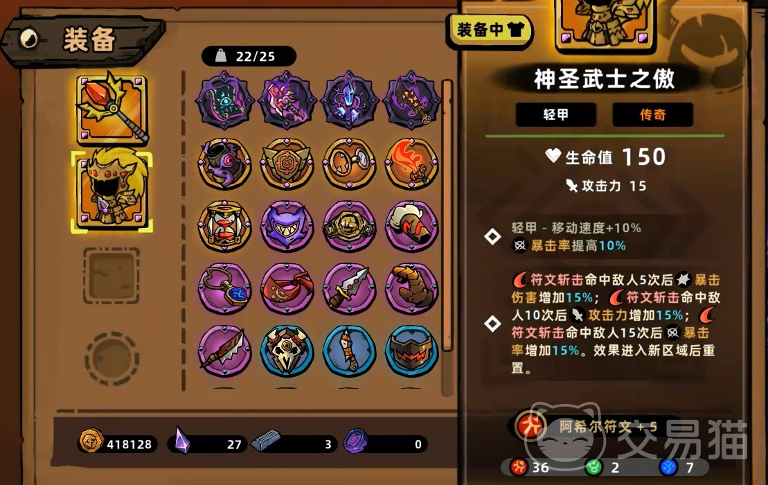 玩家在装备这件武器之后最好选择神圣武士之傲,这件防御装备能够提高玩家的暴击率以及移动速度,帮助玩家在战斗的时候能够更好的躲避敌人的攻击。