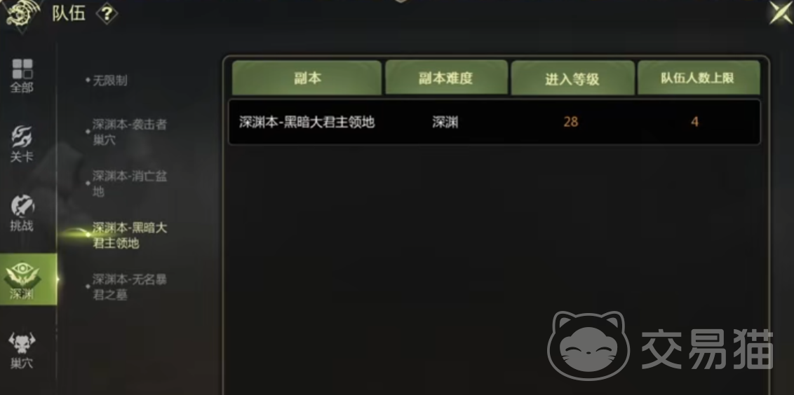 想要开启深渊模式的话很简单,只需要将自己的等级提升至对应的关卡要求之后,并完成相应的主线章节任务。就能够直接解锁新的副本,这里以黑暗大君主领地为例。只要你的等级达到28,那么就足以完成进入的要求和条件了。不过实力还没变强之前,建议还是刷一些普通本。
