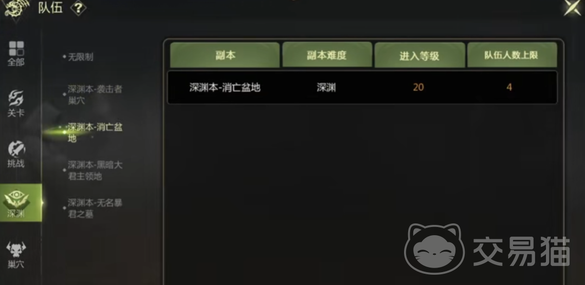 然后游戏目前的话一共有4个深渊,最低等级的深渊也要15级才能开启,也就是袭击者巢穴。另外还有消亡盆地,想打的话等级也会提升,要20级才能进入。还有黑暗大君主领地,这个本就要28级才能进入。最后无名暴君之墓要35级才可以进入,总之除了等级外,大家的装备也要好才有机会通过。