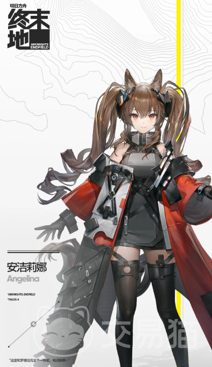 安洁莉娜是一位被外派到终末地的干员,她有着出色的作战天赋,开朗乐观的性格,但对于未来她会怀抱着一点点的忐忑,她的终结技可以跳跃到空中,随后发射多把长枪,对周围敌人形成伤害加成,同时这招有一定脉冲效果,会对周围敌人也形成一定的冲击伤害。