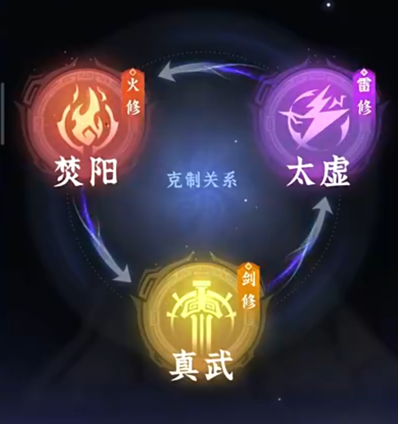 而几大职业之间其实是存在相互克制的,焚阳火修克制真武剑修,真武剑修克制太虚雷修太虚雷修克制焚阳火修,巧妙的利用这种克制关系,就能在战斗中占据优势,尤其对新手小伙伴来说。