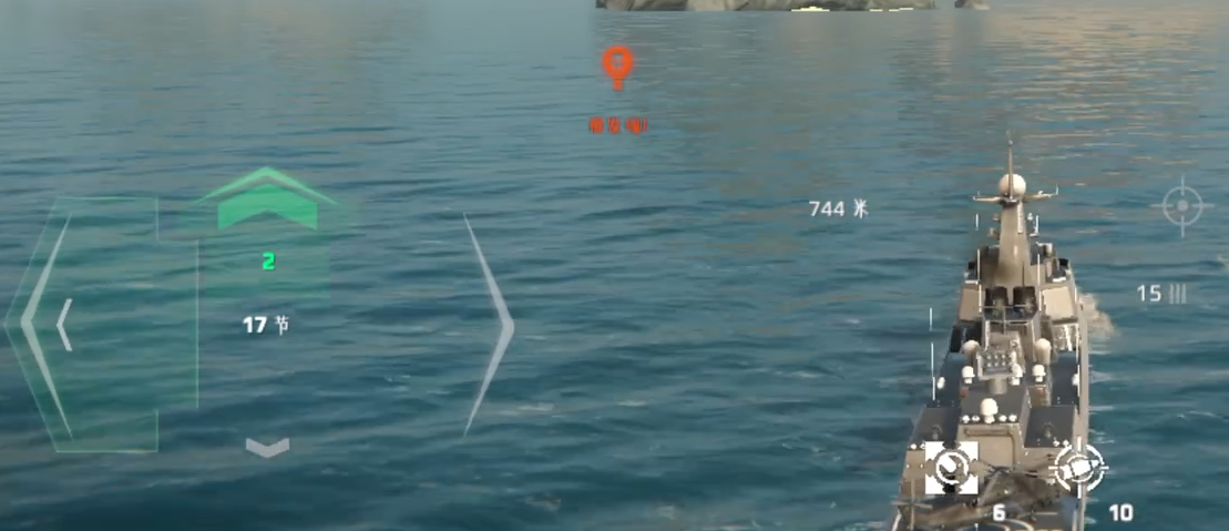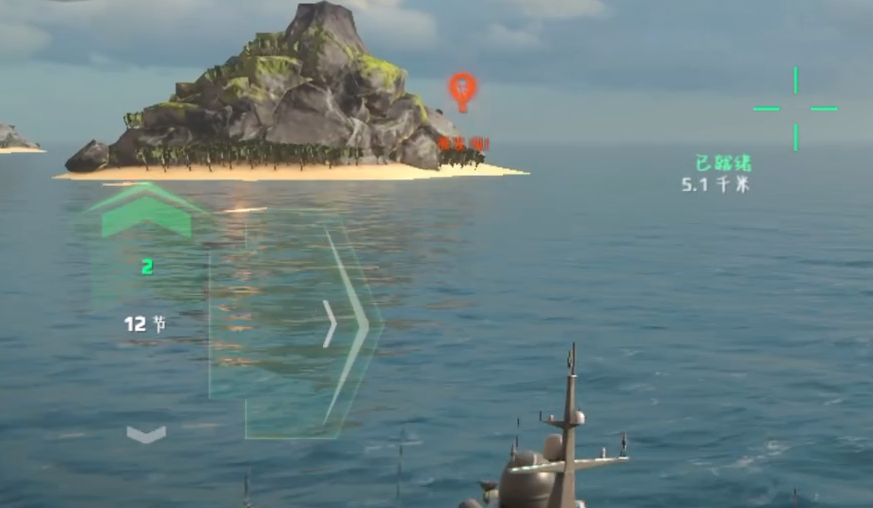 咱们可以利用左右来调节方向,而向前的按钮则是会对我们进行加速移动,这可以有利于咱们对敌人的追击或者是逃跑使用。接下来咱们需要根据指示往右边航行30度,之后咱们在航行了一段时间之后便可以看到不少的敌人,这些敌人距离我们还比较远,这个时候需要对其使用望远镜来更好的查看这些敌人的位置,之后咱们便会解锁主炮,我们可以选择靠近左边的敌人来进行攻击,在攻击的时候我们尽量使用望远镜来进行瞄准比较好。