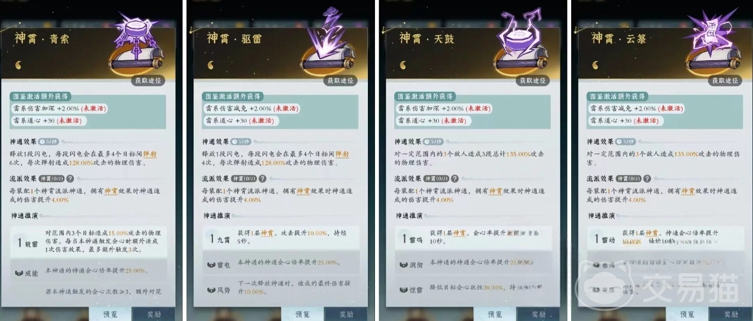 而“五雷·惊蛰”则通过提高技能触发几率与暴击率,确保整体输出的稳定性,让这套组合在副本与群体战斗中表现得游刃有余。相比之下,注重单体输出的神霄流派则更适合PVP或BOSS战。这一流派以“神霄·青索”为核心,通过大幅提升会心倍率对敌人造成致命打击,搭配“神霄·驱雷”和“神霄·云箓”,进一步强化暴击率与伤害加成,同时配合“神霄·天鼓”附带的额外物理伤害,使得整套技能在短时间内爆发出惊人的破坏力。无论是竞技场中的快速决胜,还是面对高血量BOSS时的一击制敌,神霄流派都能为玩家带来出色的表现。