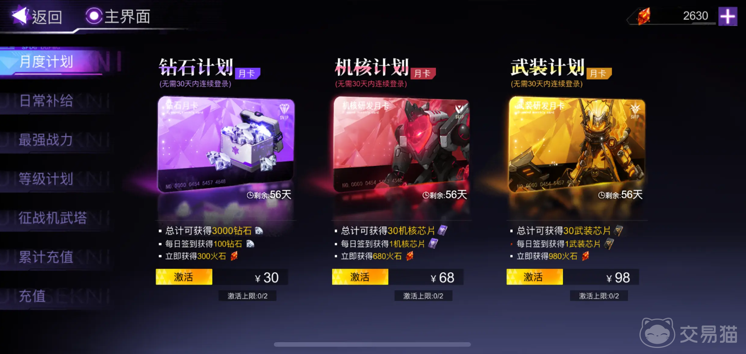 在火柴人联盟3中,玩家氪金首选为月卡,月卡性价比很高。除了不同品质武器和道具之外,还带有三千钻石、三十武装芯片、三十机核芯片。消费月卡,玩家还能获得其他福利,比如源源不断的钻石和武装奖品劵。按照玩家不同预算,可以购买三十元钻石卡、六十八元机核卡、九十八元武器卡都是不错的选择。钻石计划可以获得超多钻石。玩家日常培养角色消耗钻石数量巨大。