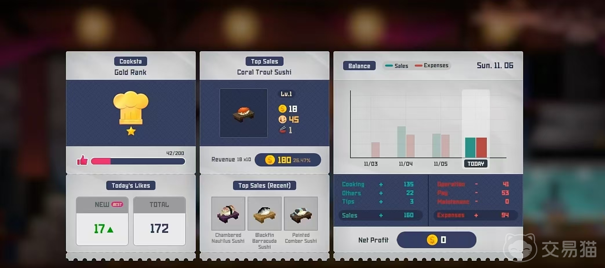 厨房得有詹姆斯、米仓、真纪、裕介这四位员工,随着升级能解锁众多新颖菜谱,性价比极高。而拉乌尔则是厨房中不可或缺的厨师,他的存在能显著提高饮料的售价,同时在食材处理上也极为出色,能有效节省食材成本。