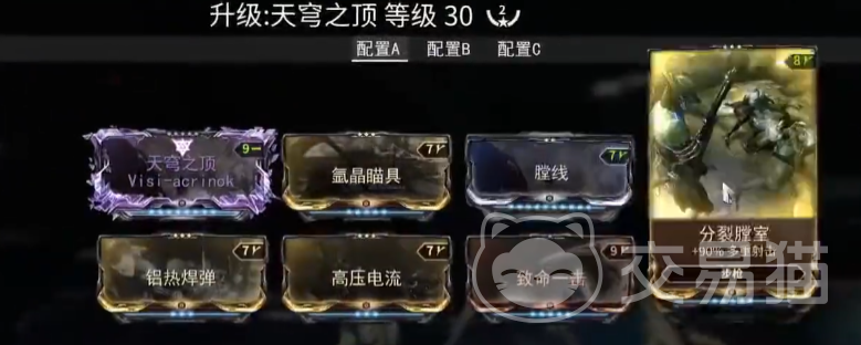 武器用“天穹之顶”,看中的是它半自动时候有无限穿透,如果没有的话则可以带上自己扫图最舒服的图纸,比如说寇恩、鳄神、龙骑兵。副武器用毒芽、脓痘,自带毒气触发快速击破孢子,同时毒气的dot也可以享受到mod的加成。