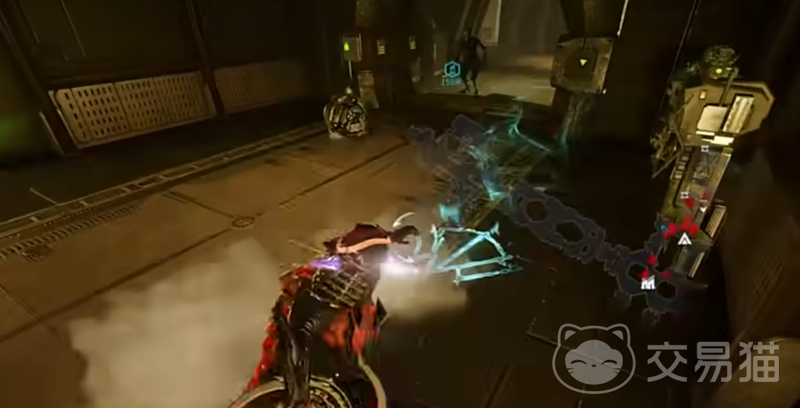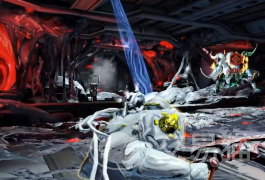 这是一个boss级别的怪物,对战的时候需要大家打光他的蓝色护盾,然后去后方的蓝色柱子后面躲着,只要打坏蓝色柱子它就会陷入到麻痹之中,这个时候只要玩家跳到它的身上,用武器打他腰上的银色关节即可。