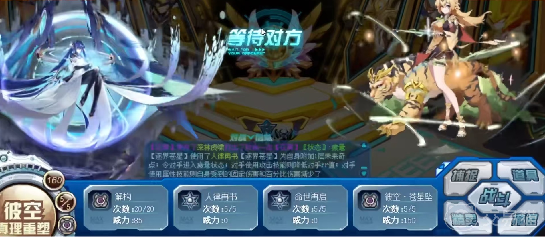 命世再启属于属性攻击,为自身添加一层未来奇点,全属性加1,如果是对手存在技能被解析,那么强化效果能直接翻倍。在4回合内,每回合使用技能,可吸取对手300点体力,如果在吸取体力时候自身体力低于最大值1/2,那么吸取效果也能翻倍。对手没有受到固定伤害,额外附加300点真实伤害,下两个回合自身所有技能先制加2。人律再书属于属性攻击,自身附加一层未来奇点,100%使对手疲惫,如果没有触发,附加200点真实伤害,如果没有命中,100%使对手疲惫并附加400点真实伤害。4回合之内如果对手使用攻击技能,那么对手所有攻击技能pp-2,四回合之内如果对手使用属性技能,那么自身下一次受到的固定伤害和百分比伤害减少100%。