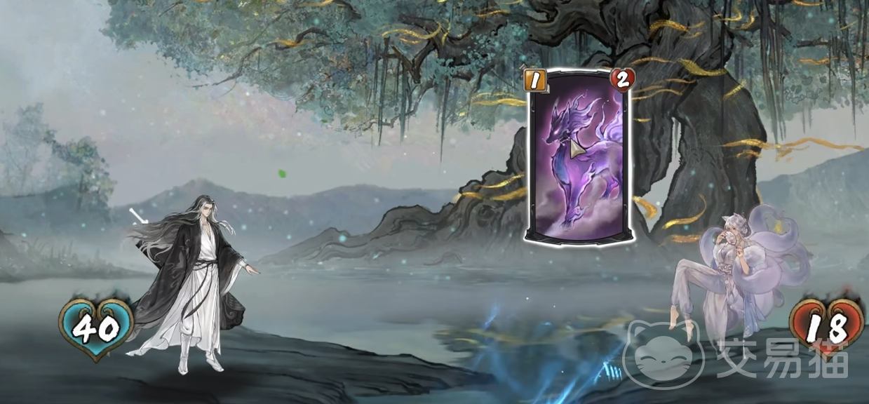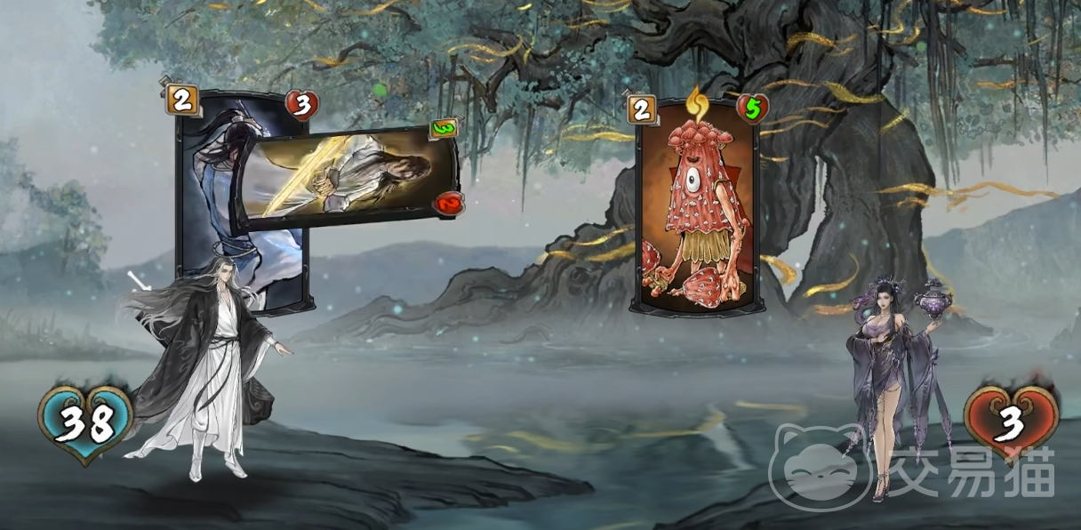咱们现阶段只能先将其给召唤出来。之后便可以结束回合了。在回合结束之后,咱们所召唤的随从将会自主进行攻击。因为对方并没有随从,所以是直接攻击到她的本体,造成2点伤害。之后对方会召唤一名丹傀随从。这张卡在召唤的时候可以随机入手一张丹药。他是生命值2点,攻击力只有1点,但对我们的随从攻击一下也会让其直接败退。这里说一下,一般随从在攻击的时候会优先攻击对方的随从卡,除了有些特殊能力的会直接攻击敌人本体。