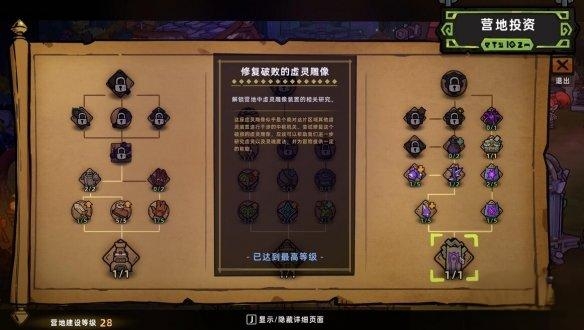 进行营地建设的过程中我们把需要建设的地方给全部解锁以后,就需要升级它们了,升级建设需要用到点球,而在加点时还需要分清楚优先级,被红色圈定的地方是必须要加点的,这些地方通常是最应先升级的选项,黄色圈住的地方则是玩家可以根据自己点数多少来决定,绿色的地方就是没必要加点的地方。