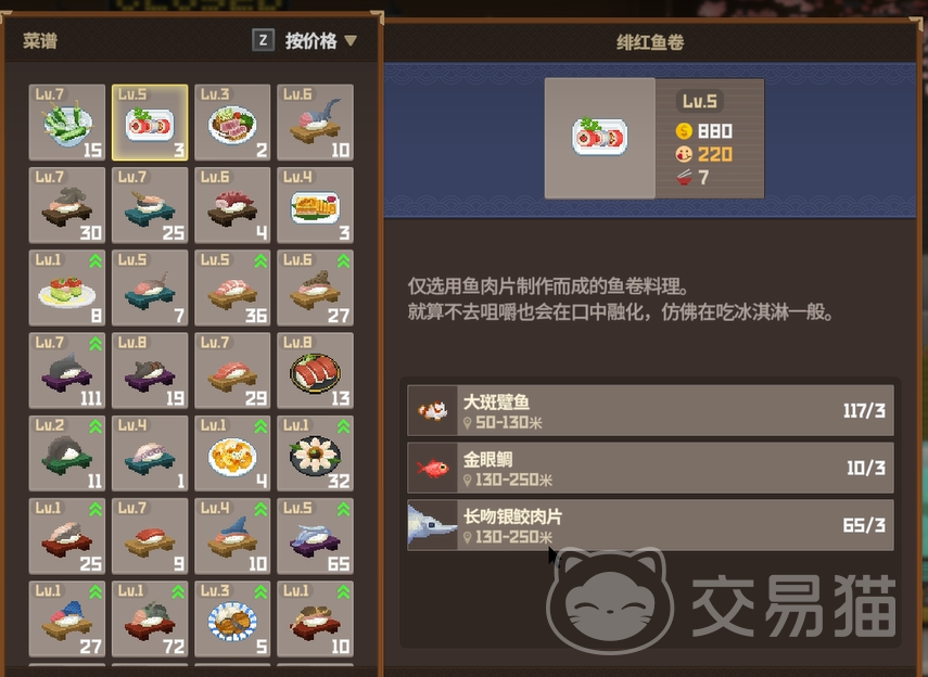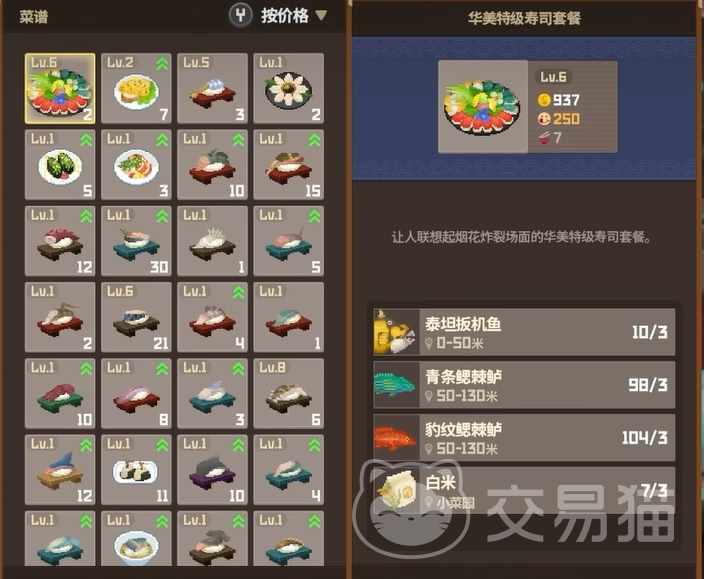 在游戏的初始阶段,我们资源有限,必须精打细算。这里有几个小妙招,助你轻松度过起步难关。首先,在能建鱼塘的第一时间,挑选容易捕获且寿司售价还不错的鱼类,比如海天使和海马。养殖这些鱼,不仅能稳定供货,还能帮你省下外出捕捉的精力。此外,如果发现捕获了一些暂时用不上的鱼,比如不属于现阶段菜谱的鱼类,千万别闲着,直接卖掉换现。这种“变现流”能帮你在前期迅速积累资金。最后,随着主线任务的推进,你会解锁更多菜谱。建议优先选择那些材料简单、售价却高的菜品,努力培养明星菜,比如简易寿司或豪华拼盘。