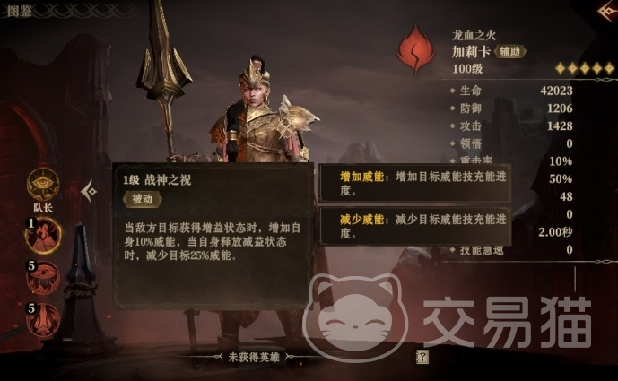 战神之祝是一个强大的被动技能,当敌方目标获得增益状态时,加莉卡自身的威能就会增加10%;当自身释放减益状态时,减少目标25%的威能。在对抗具有多种增益效果的敌人时尤为有效,能够显著增强加莉卡的战斗力,并削弱敌人的输出能力。