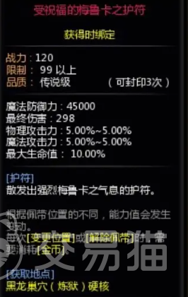 要想获取,其实这里就会有一些限制条件,一般可以每天获得50个限购护符。还有一个100的红钻,深渊副本基本上每一次通关2~3个,在完成任务或者是古代遗珍时,也有一部分机会可以获取。