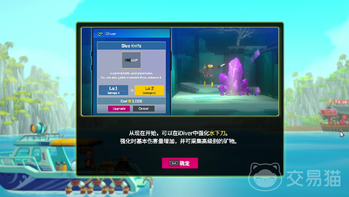 水下刀的升级需要玩家确保自己的主线剧情内容已经推进到第二个章节,并结识了游戏当中的武器开发商,随后玩家需要深入海底,挑战各类boss,其中就包含有大王鱿鱼、吸血鱿鱼、海龟等等,这些boss在挑战成功之后会掉落部分的水下刀升级材料,在之后,玩家前往到武器开发商之中进行小刀的升级即可。