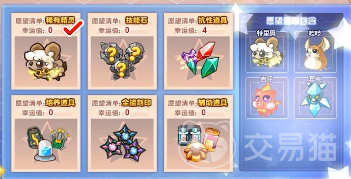每次许愿的结果并非完全随机,而是有一定的概率机制在其中,如果大家在一次许愿中没有抽到心仪的物品,也不用担心,因为每失败一次系统都会为大家增加幸运值,它会随着许愿失败的次数逐渐累积,而幸运值越高,下次许愿时获得物品的概率也就越大,也就是说随着大家参与活动的次数增多,获得珍贵物品的机会也会相应增加。