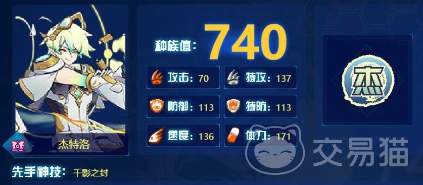 先手技能千影之封拥有先制+3 的强大优势,它不仅能够精准地消除对手的能力提升状态,而且一旦消除成功,就有会令对手陷入混乱状态,即使未触发混乱效果,也有50%的几率使对手麻痹,同时,还会吸取对手20%的最大体力,并且每次使用这个技能,吸取体力的比例都会提升10%,最多可提升至40%,而且每回合都有5%的概率直接扣除自身50点体力,防御技能奔鹰破穹必定命中,能够精准地消除对手的回合类效果,且杰特洛自身会获得短暂的无敌状态,免疫下一次受到的异常状态,同时令对手陷入混乱,在接下来的3回合内,如果对手使用攻击技能,那么会直接被麻痹,使其无法动弹。